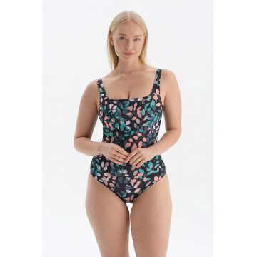 Costum de baie trei piese Sheer, imprimeu floral si sutien cu push up, Verde